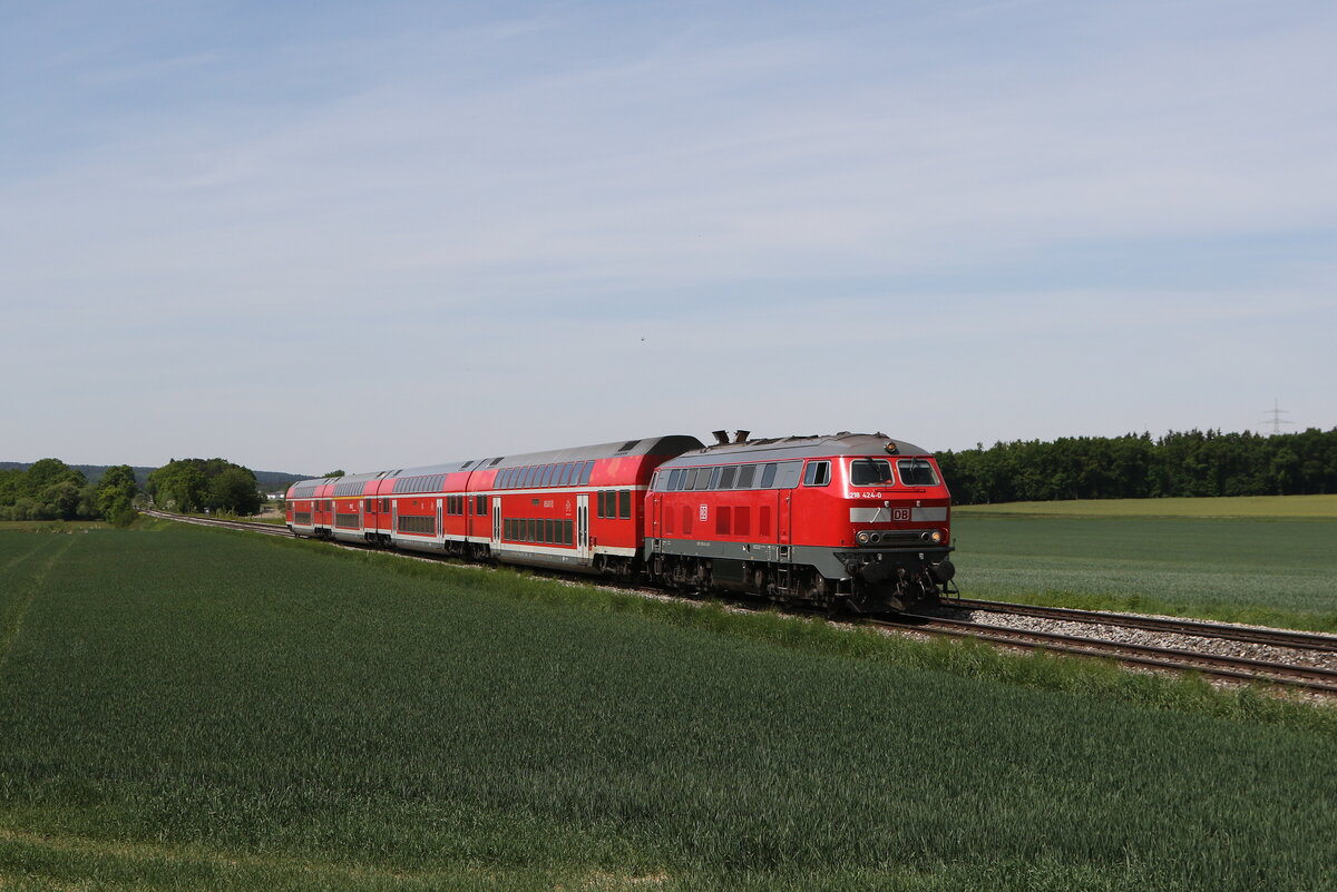 218 308 mit einem Kesselwagenzug aus Burghausen kommend am 21. Januar 2026 bei Heiligenstatt.