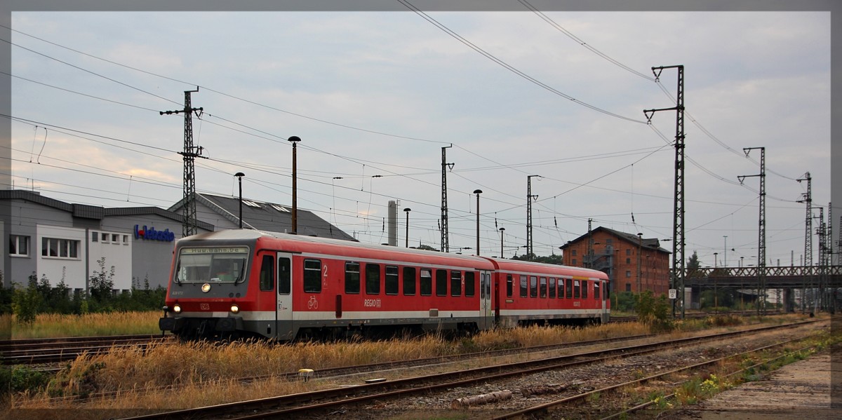 285 119 bei ihrer Pause im Neubrandenburger Gbf und der 628 427 bei der Ausfahrt in Richtung Pasewalk am 27.04.2015