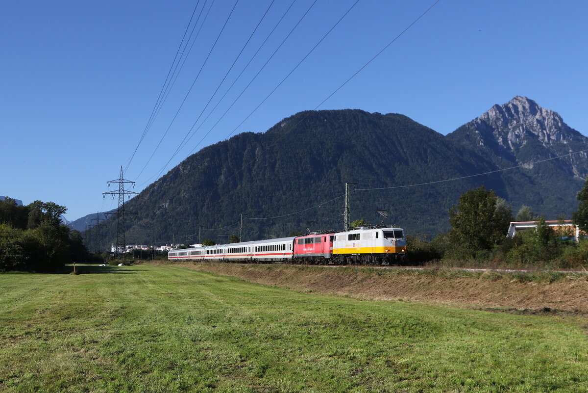 101 005 "DEVK" mit dem "IC Königssee" auf dem Weg nach Würzburg am 7. August 2022 bei Himmelstadt am Main.