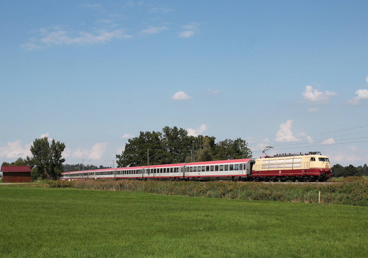 103 222 auf der Rückfahrt von Linz nach München am 26. Juli 2015 bei Übersee am Chiemsee.