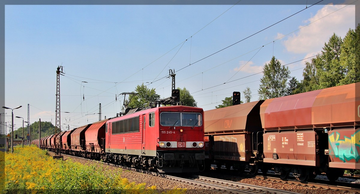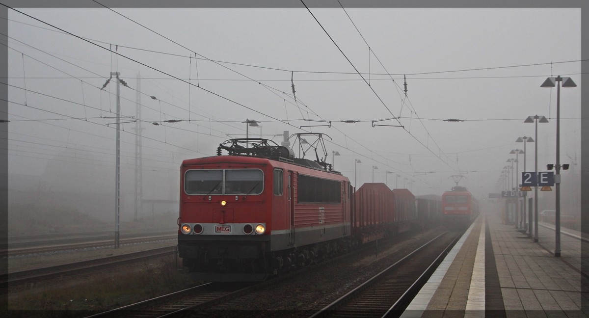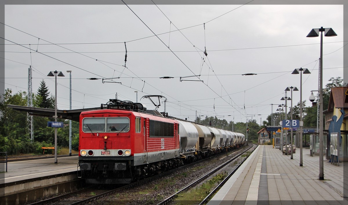 155 184 "MEG 703" mit ihrem Zementzug nach Rostock am 04.10.2015 in Neustrelitz Hbf