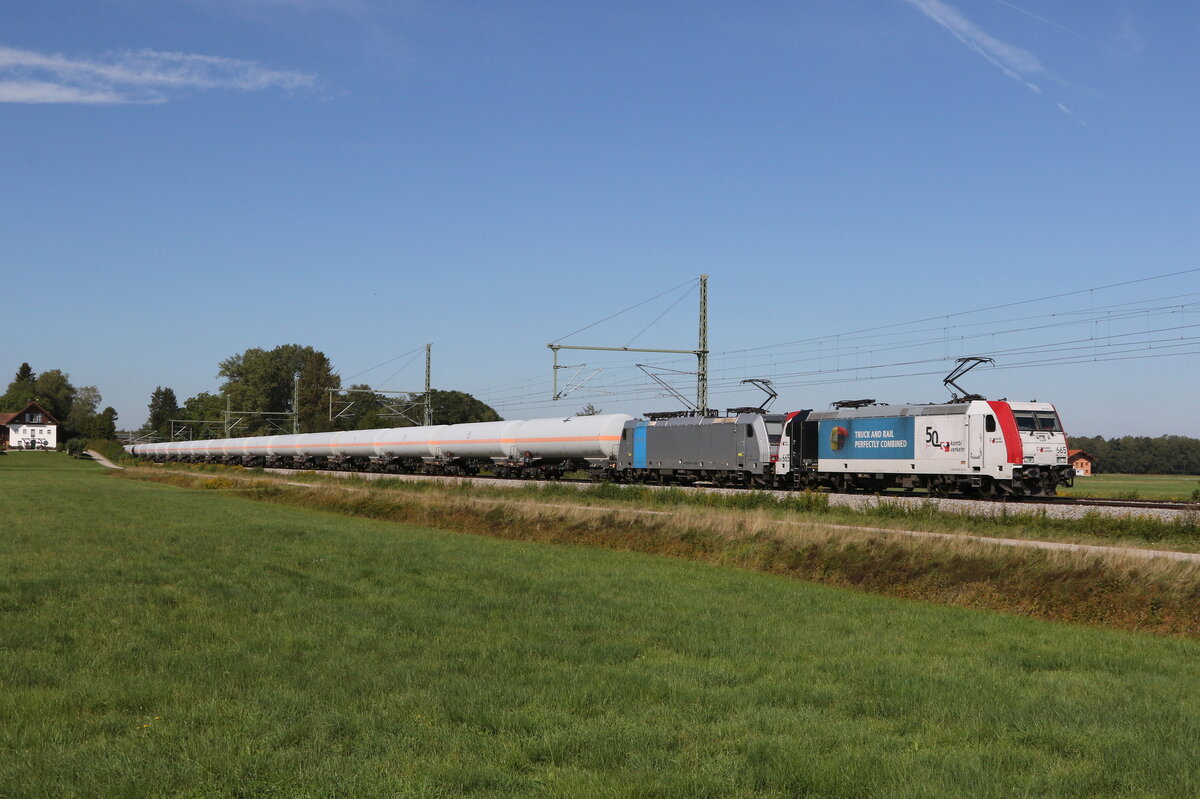 185 665 mit einem "KLV" am 23. Juli 2021 bei Himmelstadt am Main.