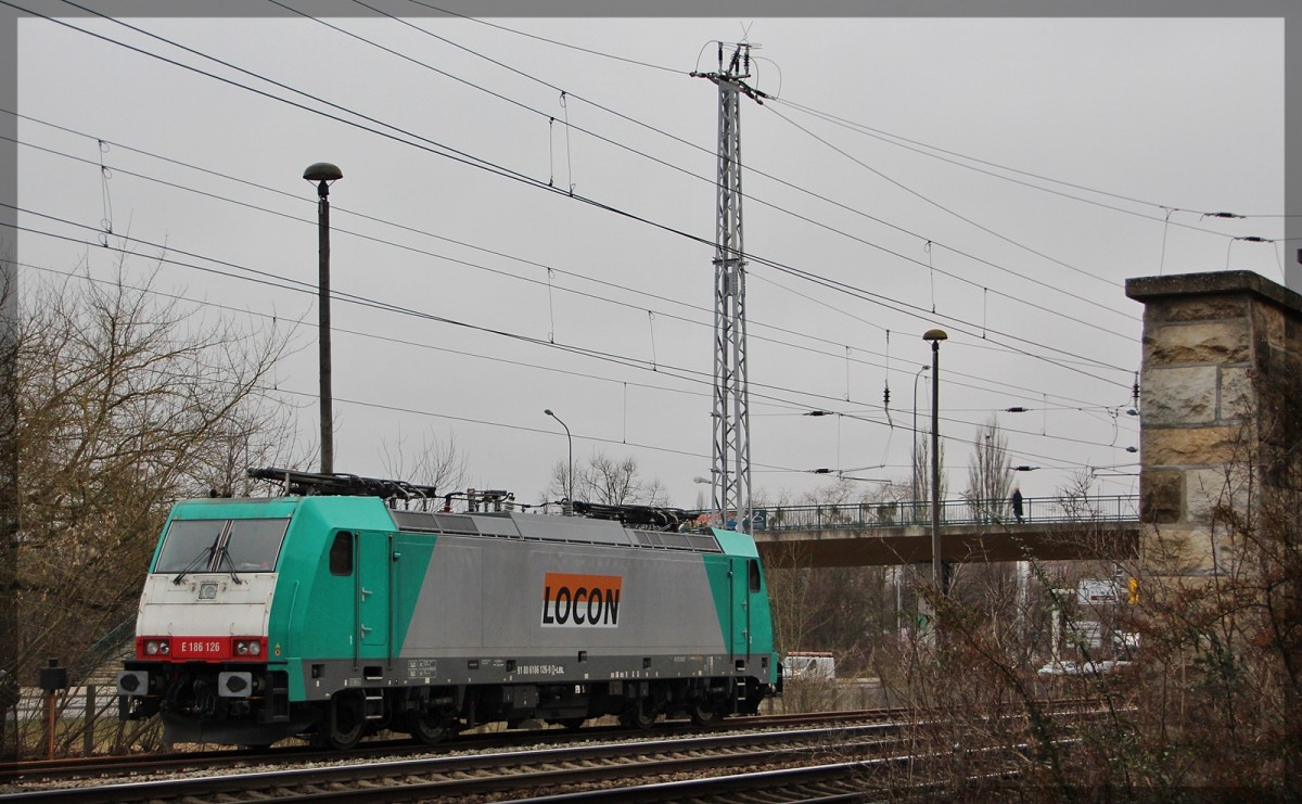 E186 249 (270 006 PL) von Locon abgestellt in Waren (a.d. Müritz) am 19.04.2016