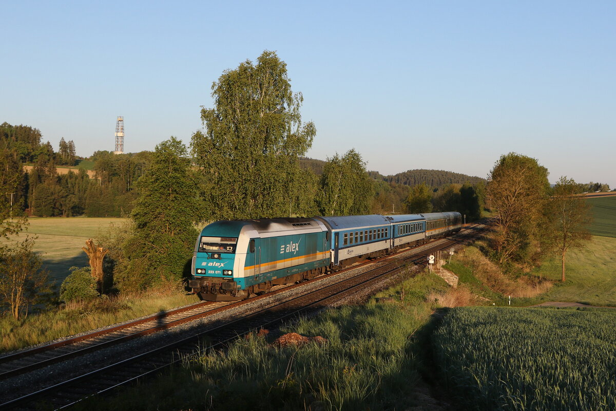 223 064 mit dem "ALEX" am 3. August 2022 bei Escheldorf in der Oberpfalz.