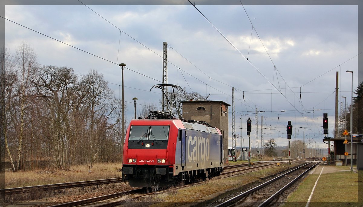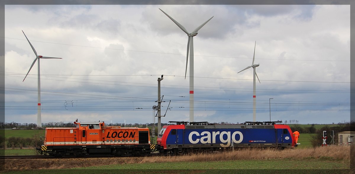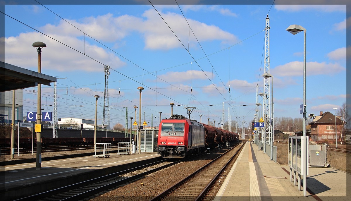 076 109 von Raildox abgestellt mit 482 036 in Waren an der Müritz am 11.11.2015