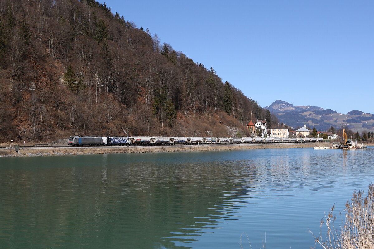 186 426 von "RTB-Cargo" mit einem Autozug am 11. Oktober 2022 bei Harrbach am Main.
