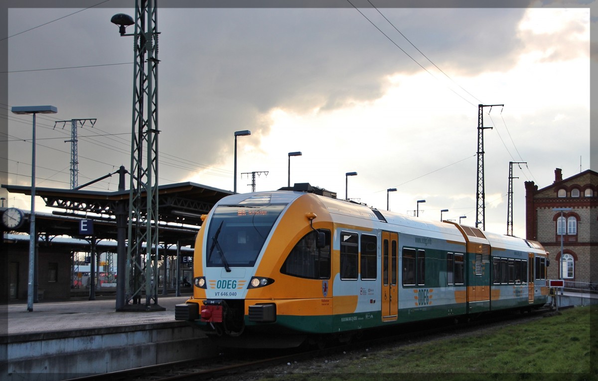 445 109 der ODEG als RE4 nach Wismar bei der Ausfahrt aus Schwerin Hbf am 26.07.2015