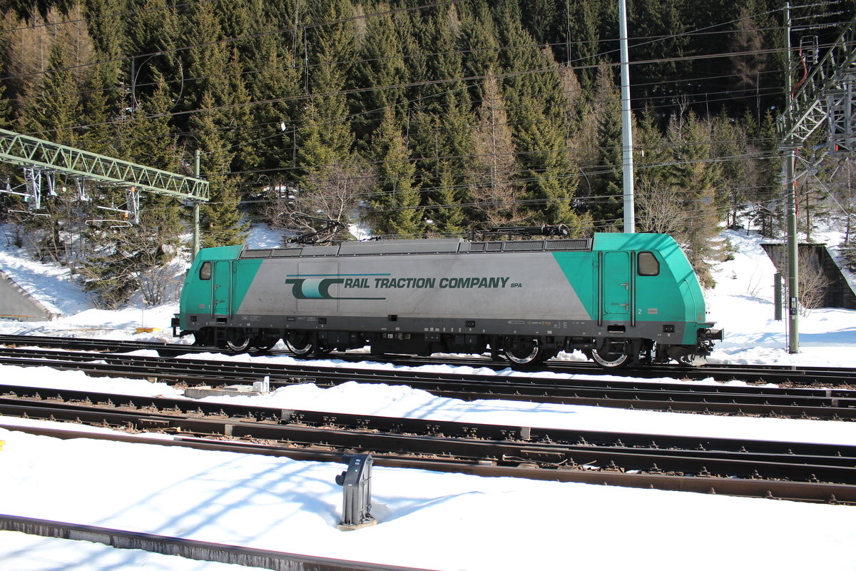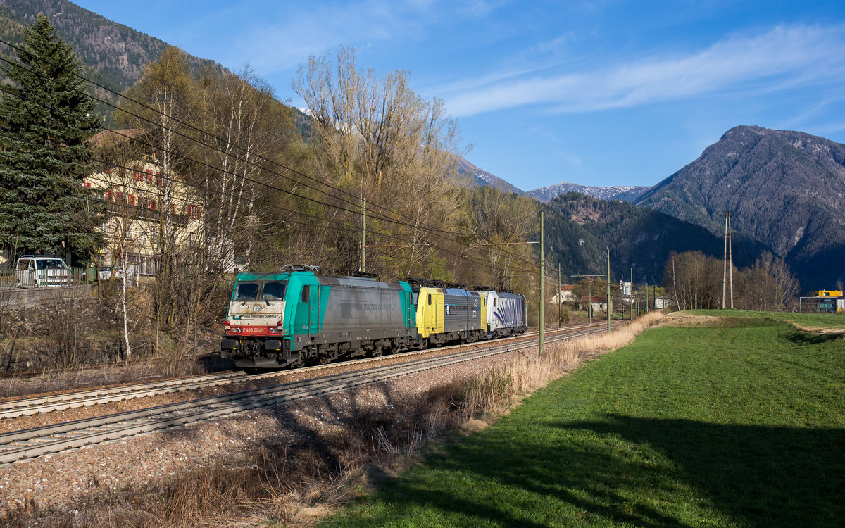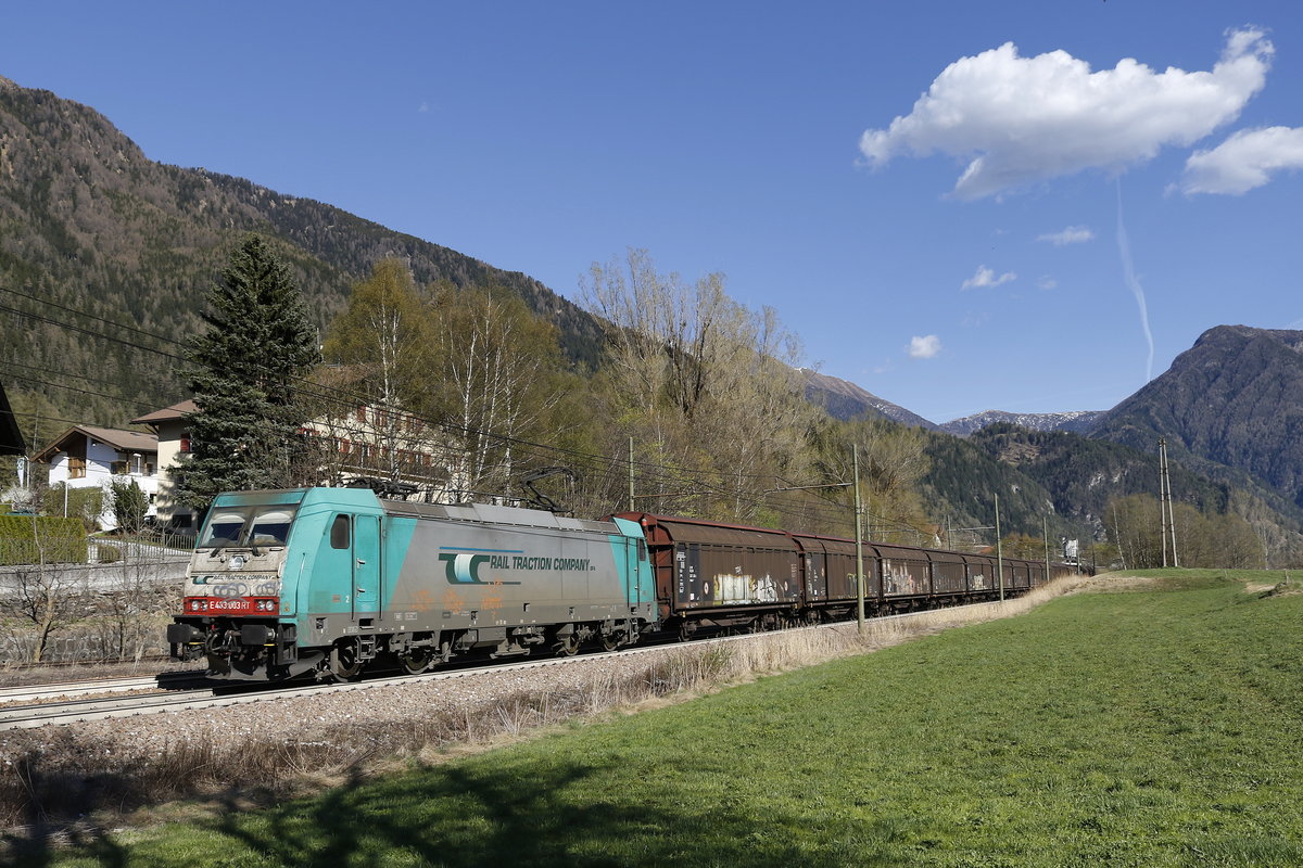 EU 43 001 der "Rail Traction Company" vom Brenner kommend am 7. April 2017 bei Novale/Südtirol.
