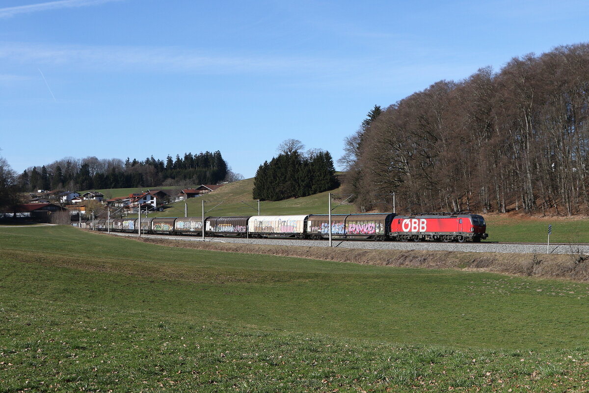1293 104 mit einem "KLV" aus Salzburg kommend am 8. April 2025 bei Axdorf.