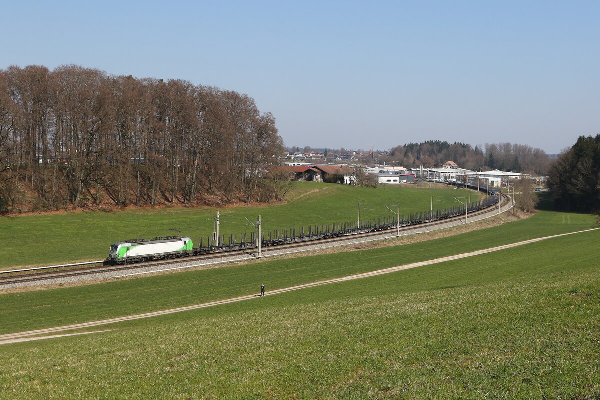 193 814 mit einem Kreideschlammzug aus Salzburg kommend am 21. April 2019 bei Grabenstätt.