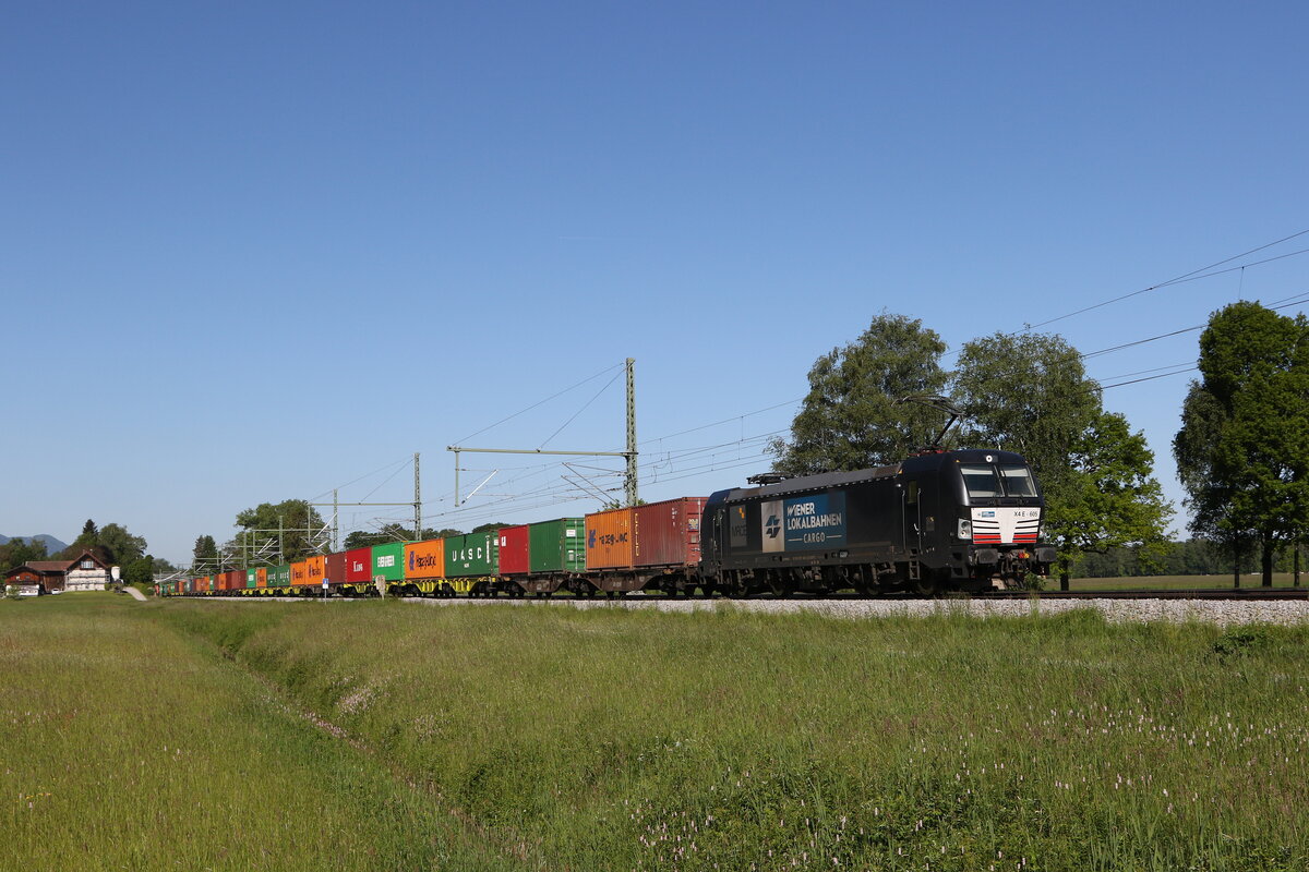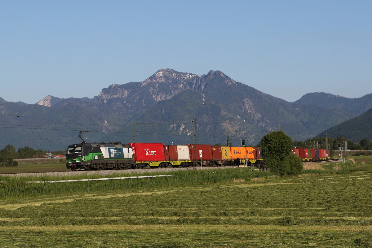 ES 64 U2-064 mit einem Containerzug am 20.Februar 2014 bei Thüngersheim im Maintal.