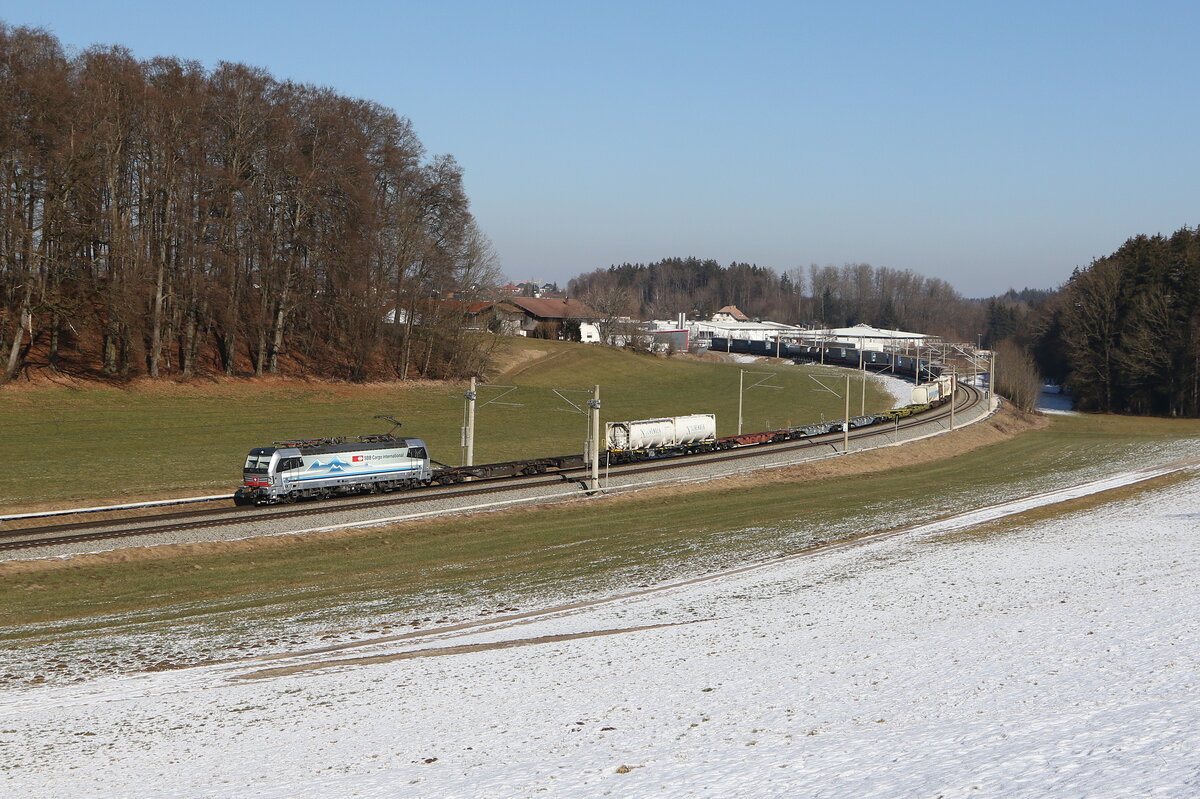 193 534 der "SBB Cargo" mit einem Kesselwagenzug am 21. Juli 2021 bei Assmannshausen am Rhein.