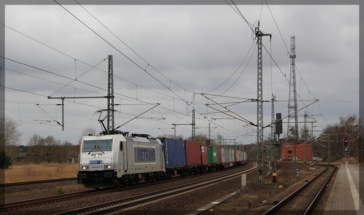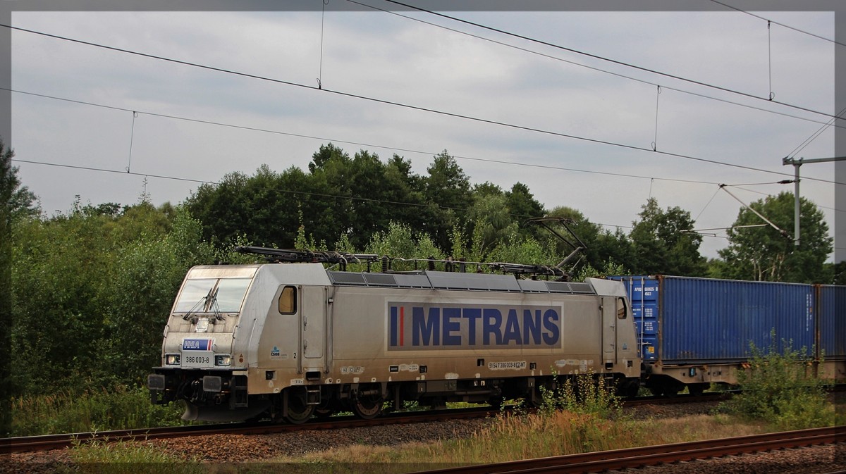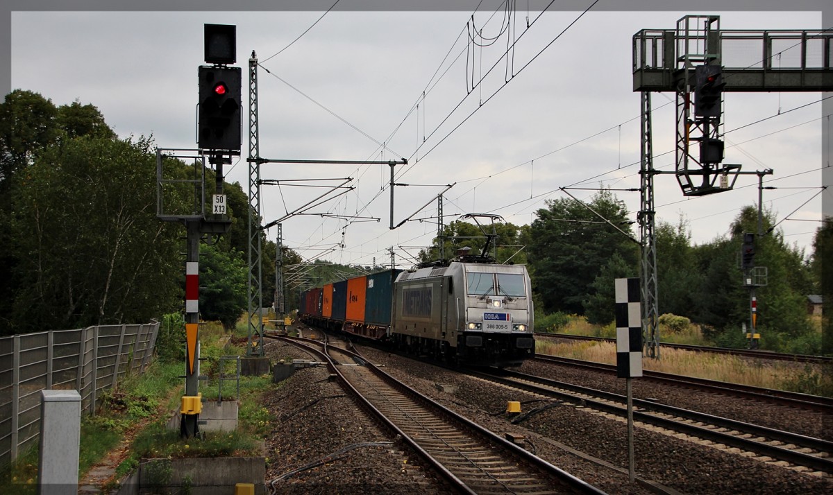 386 015 bei der Durchfahrt in Leipzig-Thekla am 19.08.2015